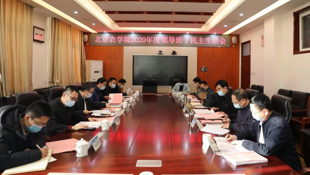 1月20日上午,北京农学院党委在行政楼第三会议室召开了2020年度领导班子民主生活会。市委督导组专家、北京科技大学原党委副书记张文明,市委教育工委统群处处长卢向红,市纪委七室副处级纪检监察员李酉,派驻教工委纪检监察组干部陈国栋,市委组织部政法教育干部处干部侯健,市委教育工委统群处干部相京到会指导。党委班子全体成员参会,校长周剑平列席,会议由党委书记杨军同志主持。