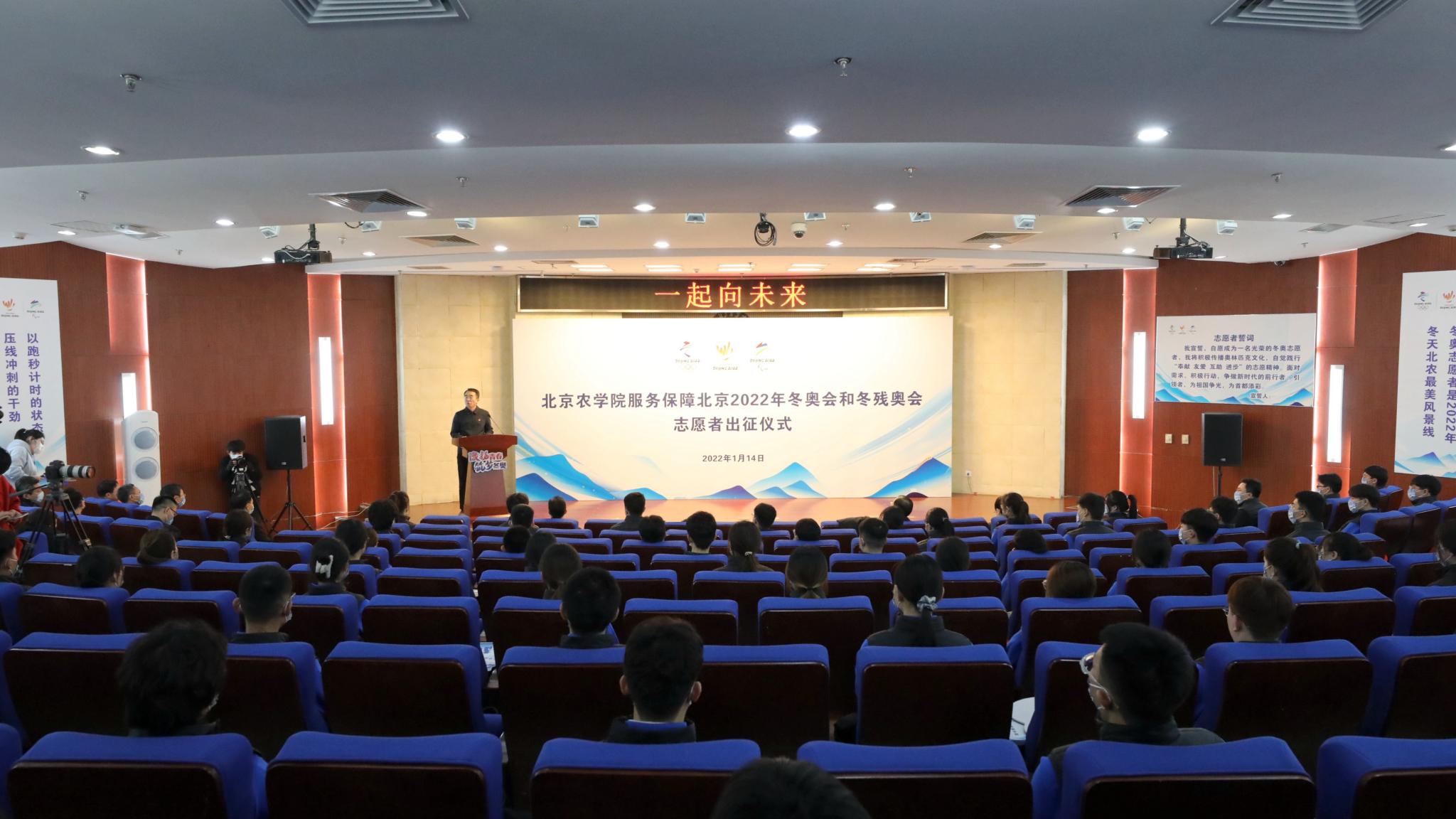 1月14日,距离北京冬奥会开幕式21天之际,北京农学院冬奥志愿者出征仪式在图书馆报告厅举行。党委书记赵锋为冬奥志愿者上出征前“大思政课”,校领导为北农志愿者团队授旗。出征仪式由党委副书记易帅东主持。党委副书记仲丛生,党委常委、纪委书记李伟书,党委常委、副院长段留生出席仪式。