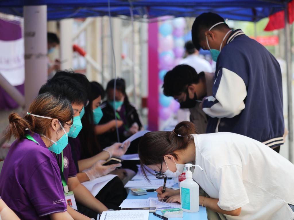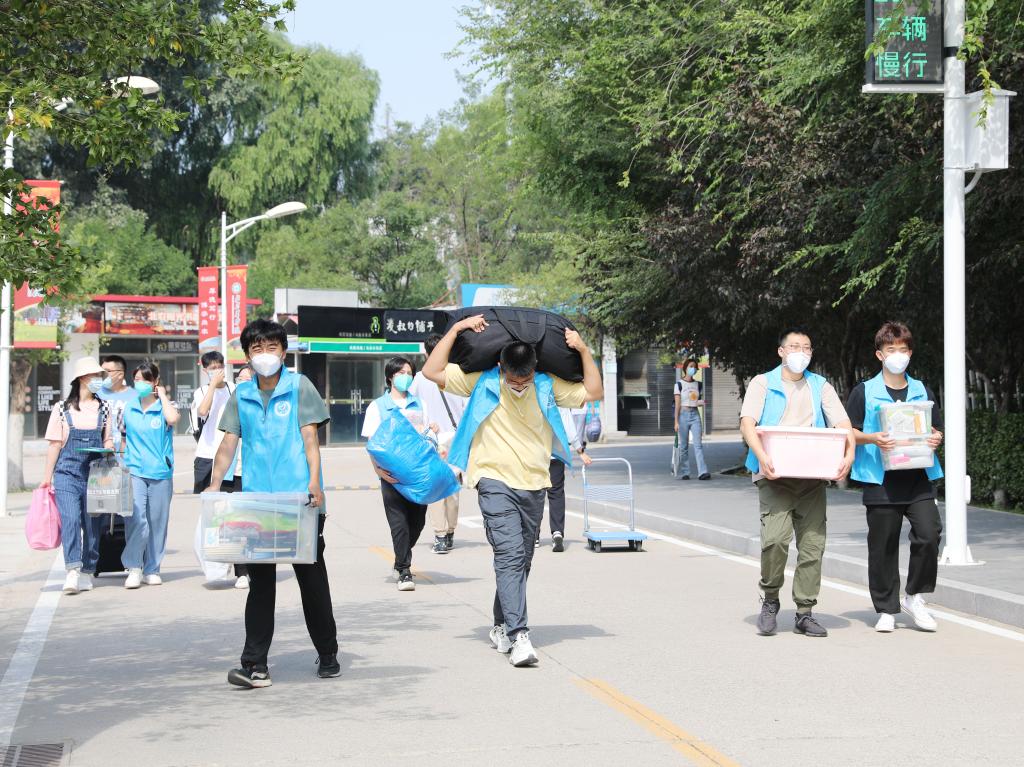 在学校门口,经过严格的消毒、核验后,工作人员和志愿者帮助新生搬运行李、引导新生到报到现场;在本科招生办公室、研究生报到处、学生处绿色通道及各学院新生报到处,工作人员热情、耐心地为新生办理报到手续、发放相关资料;在志愿者服务台及校园各处,都有学生志愿者们耐心地向新生提供引导、指示和答疑等服务。