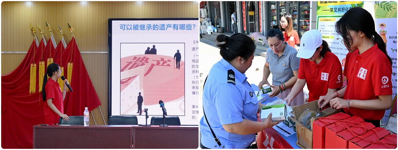 “法入乡心,理通民情”实践团深入北京市昌平区北七家镇、小汤山镇等11个行政村,聚焦宅基地纠纷、继承分家等高频法律问题,通过入户访谈、法律咨询、情景剧普法等形式,为500余名村民提供精准法律服务。团队设立“基层法律咨询点”“乡村大学生调解中心”,成功调解多起积压纠纷,并协助完成代书遗嘱、法律援助等实务。团队创新普法模式,创建公众号“青律声扬”并发布原创文章60余篇,编发《农村常见法律问题解答》手册400余册,开展线下普法讲座及法律知识问答活动,帮助村民提升法律意识。团队通过链接律所、法院资源,推动多方协同治理,为乡村振兴法治化建设探索新路径。
