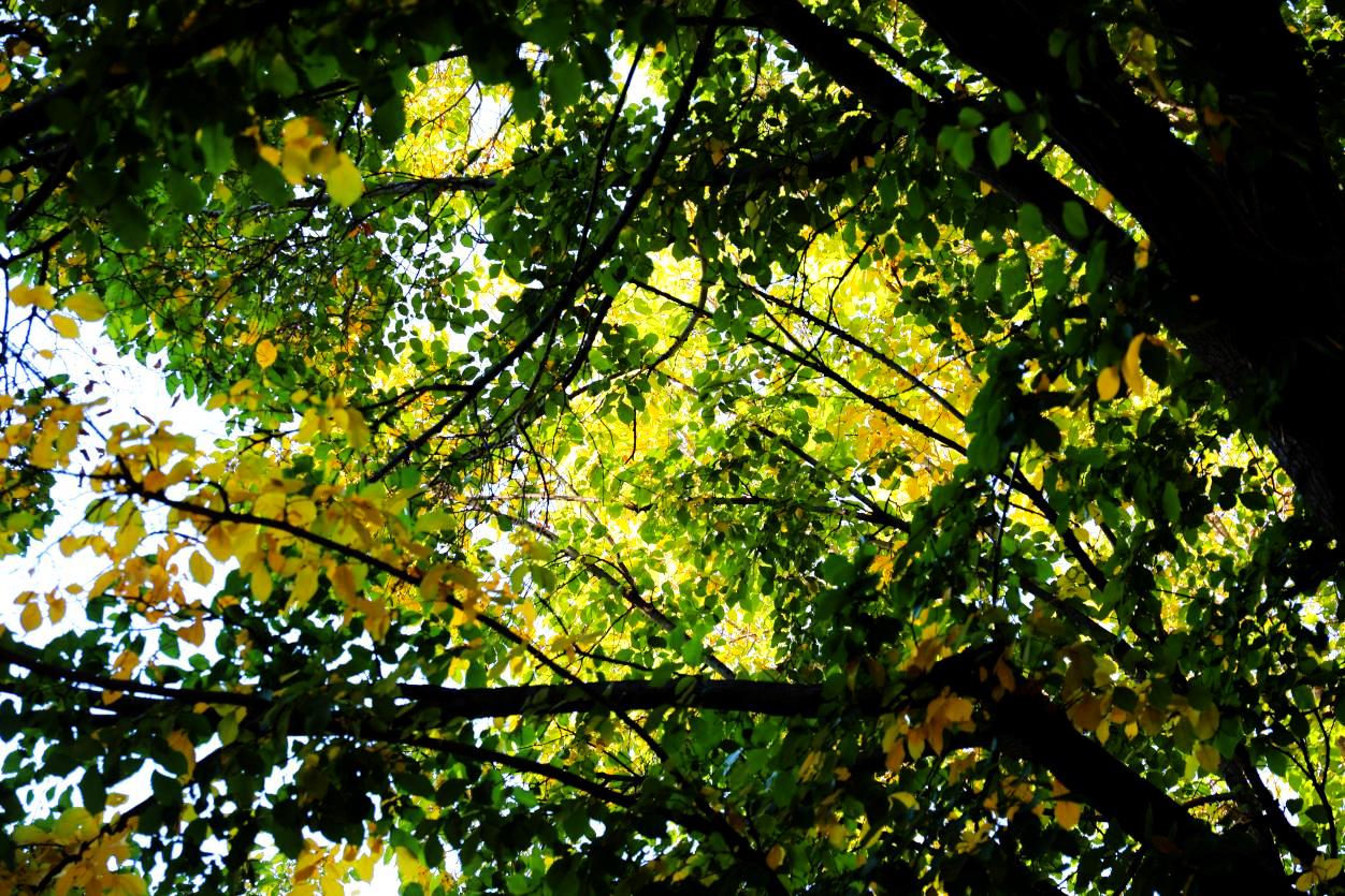 阳光从枝叶的缝隙里漏下来