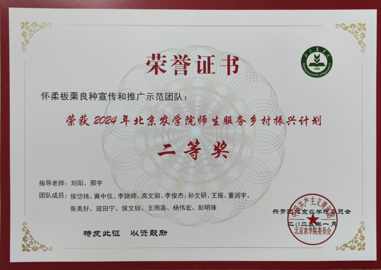 她把这份坚韧与专注同样应用在学业与实践中,书写出漂亮的青春答卷。她获2023-2024学年校级一等奖学金,作为主要成员参与怀柔板栗良种宣传和推广示范,并获2024年校级服务乡村振兴计划二等奖。