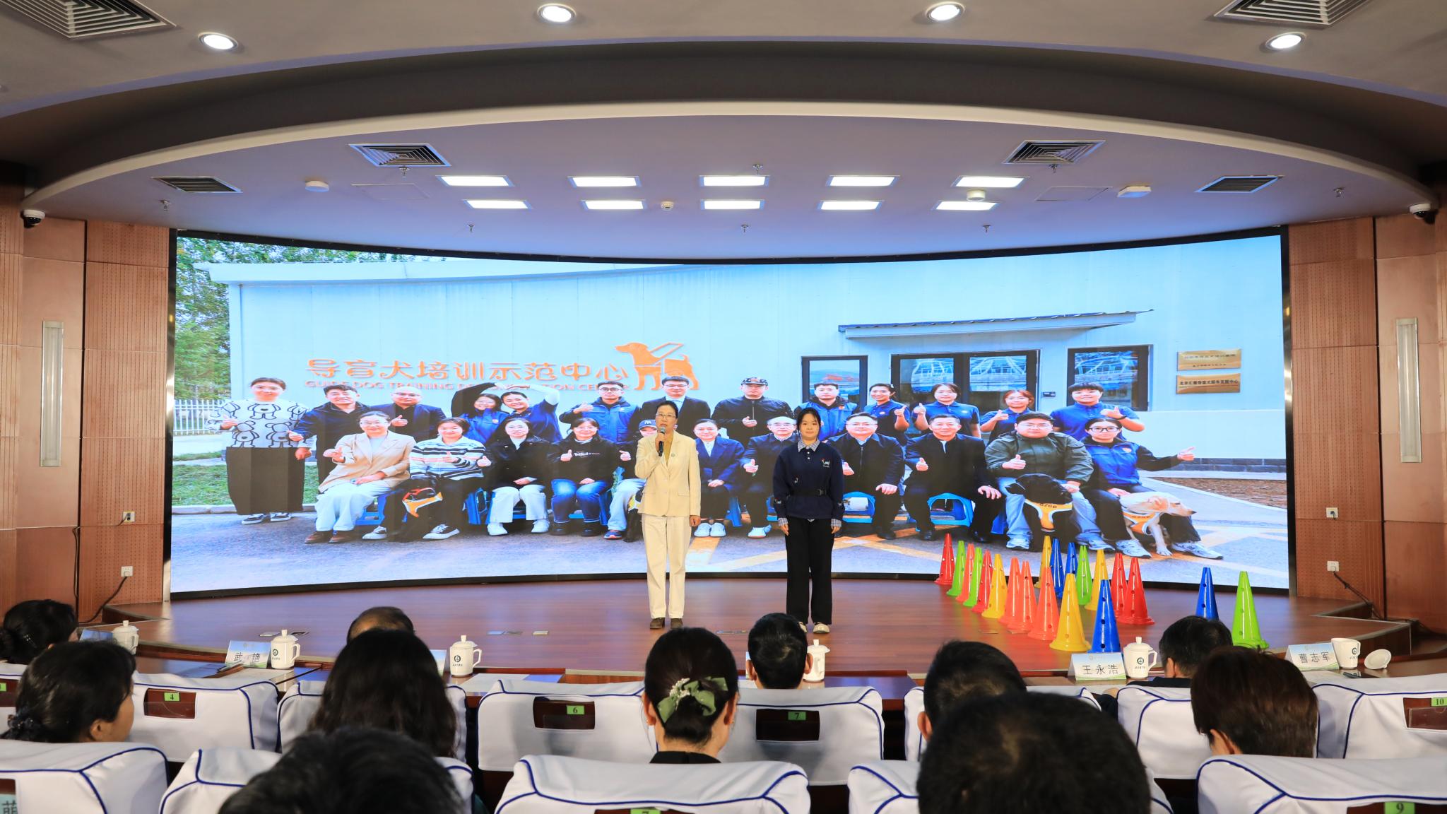 导盲犬专班负责人段慧琴副教授、实习训练员冯晓鸥分享了自北京市导盲犬培训基地落户我校以来,团队坚持把发挥学科专业优势与服务新时代首都发展和社会需求相结合,先后完成导盲犬和使用者共同训练、幼犬寄养、训导技术培训,用专业与爱心为助力首都残疾人事业高质量发展贡献“北农方案”背后的故事。