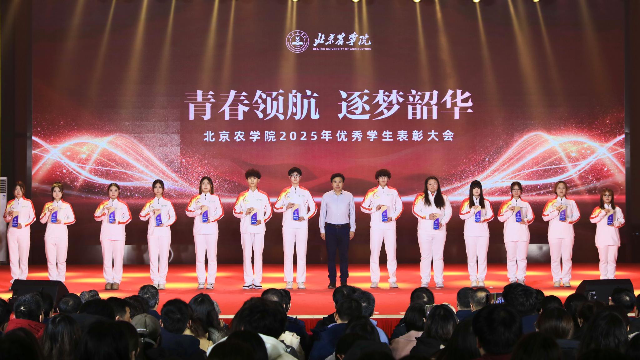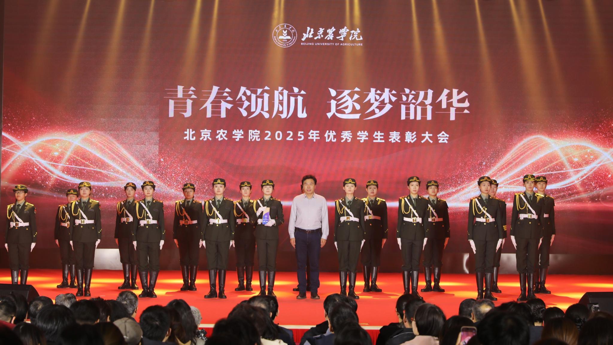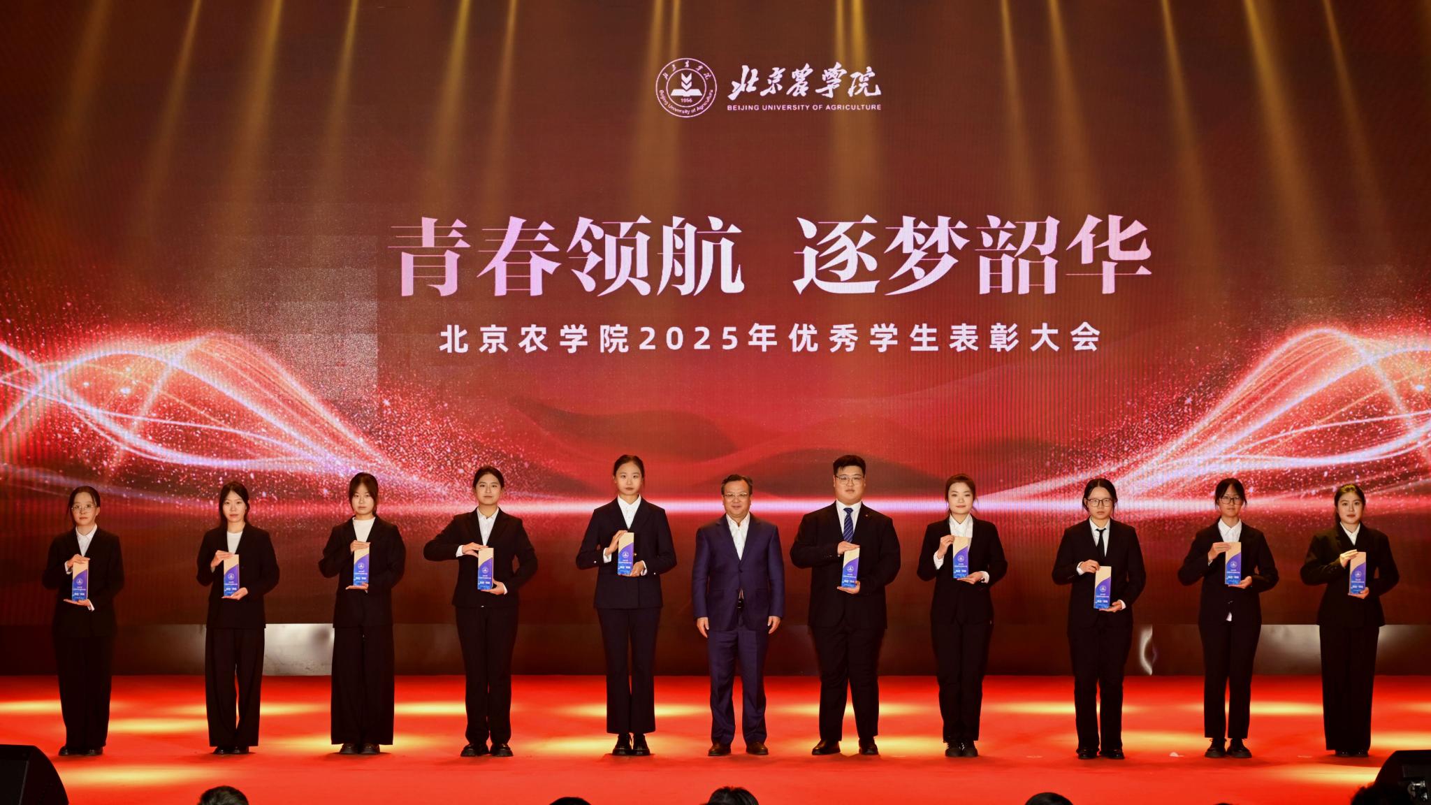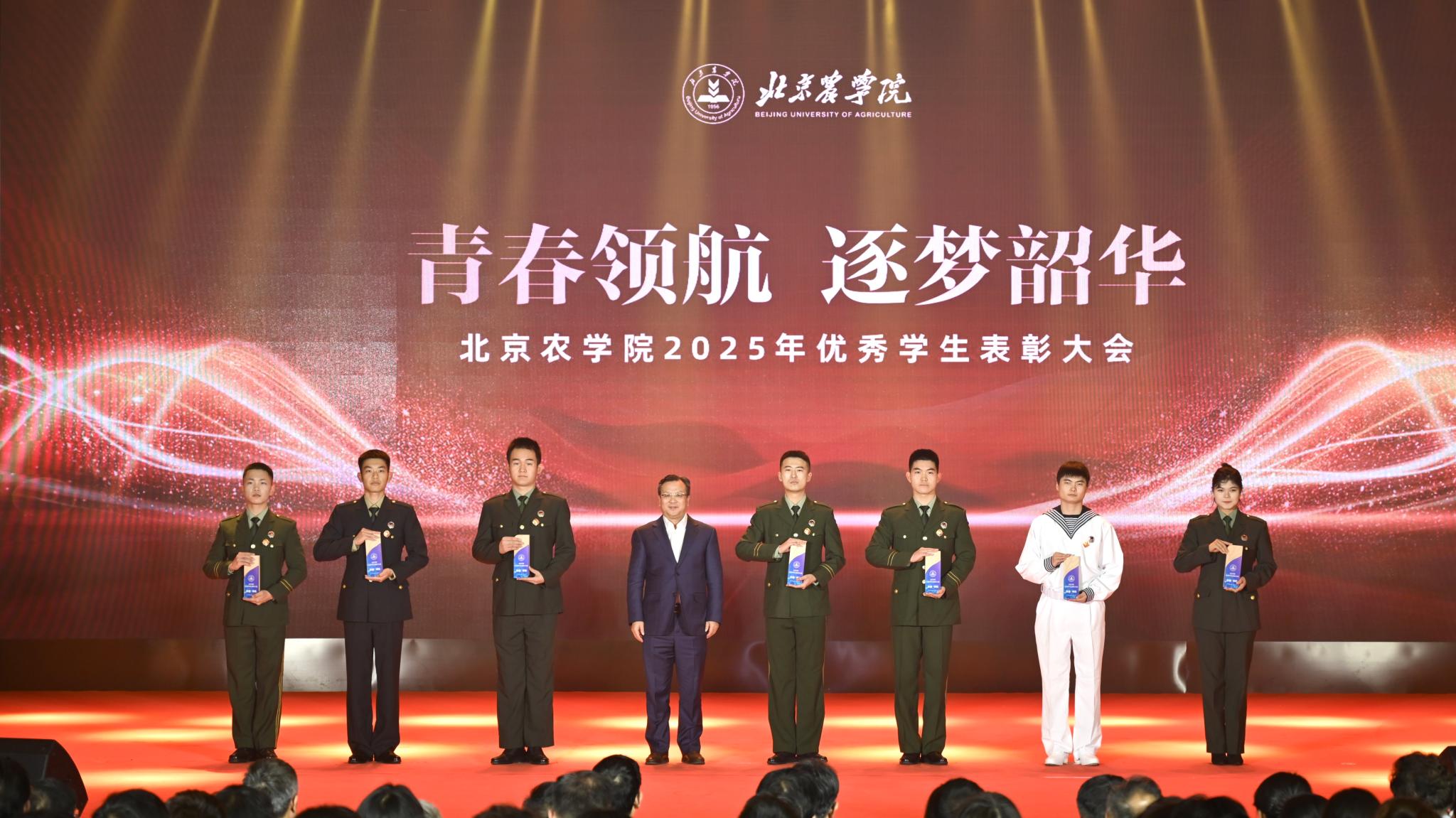 校领导分别为优秀毕业生代表、北京高校红色“1+1”示范活动获奖党支部、北京农学院国旗护卫队、“四有”优秀士兵代表、纪念中国人民抗日战争暨世界反法西斯战争胜利80周年大会广场合唱团及民兵方队代表颁奖,表彰坚守信仰、爱国奉献的青春力量;为社会实践优秀团队与先进个人、心理健康类、体育类、文艺类获奖学生代表颁奖,表彰知行合一、全面发展的奋进榜样;为市级先进班集体、市级优秀学生干部、市级三好学生、国家奖学金获得者代表、“挑战杯”及各类科创竞赛获奖团队代表颁奖,表彰勤学善思、勇于创新的先进典型。