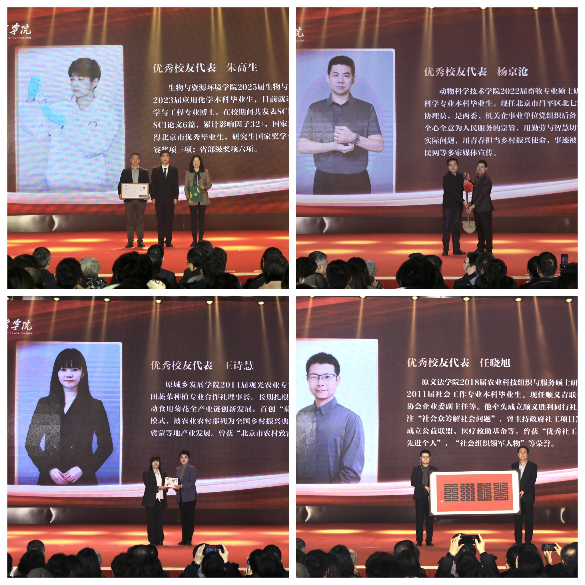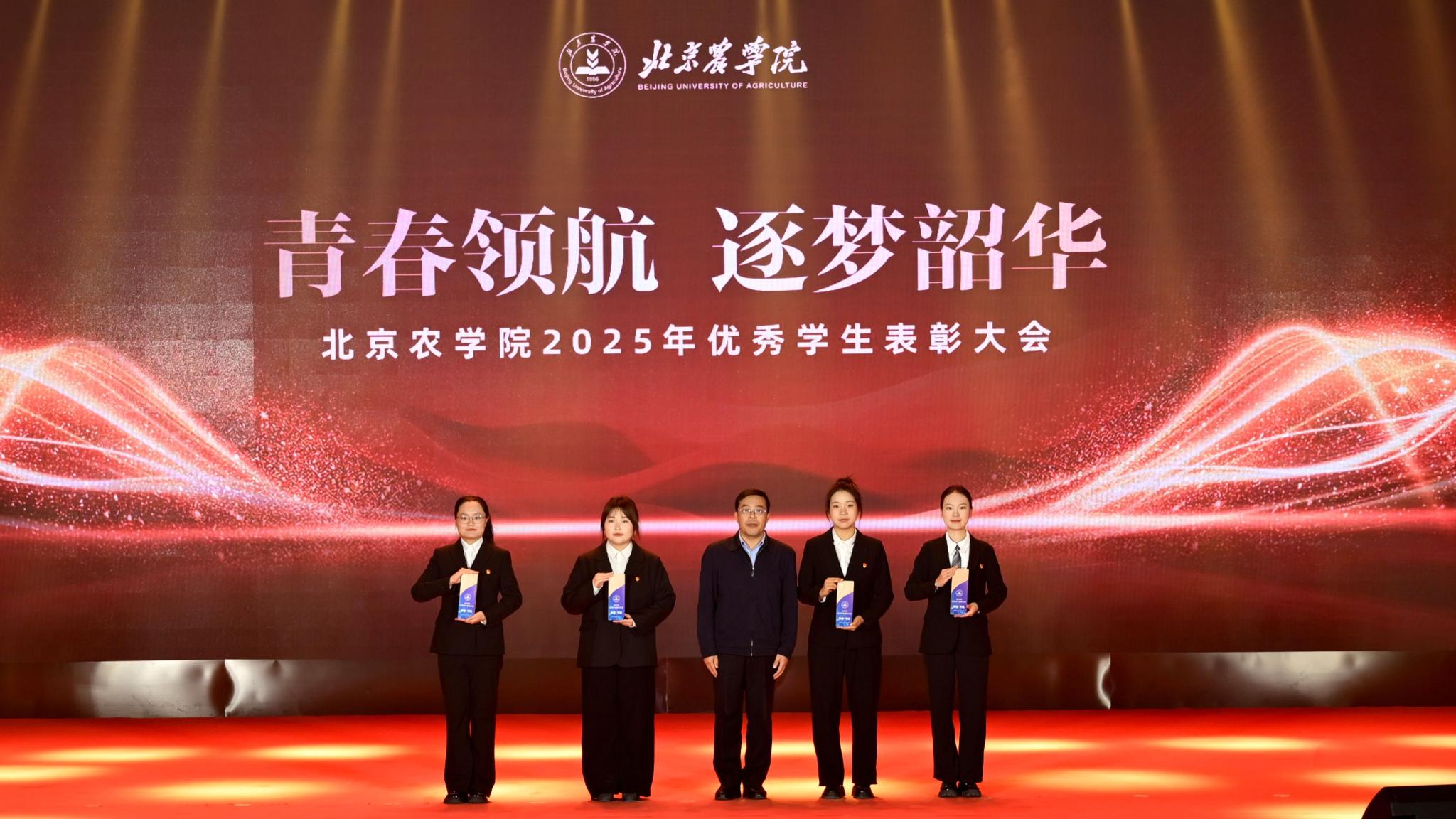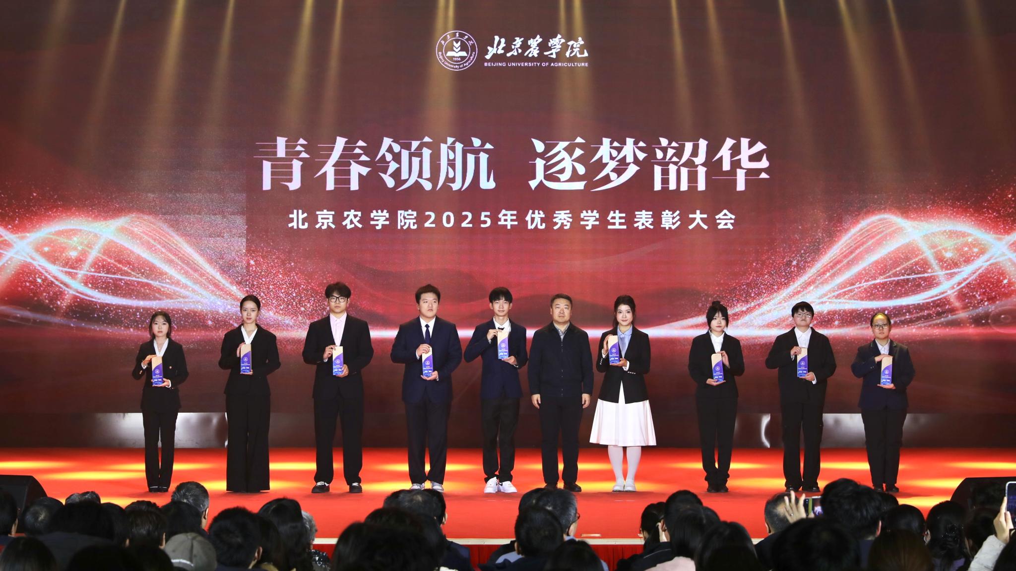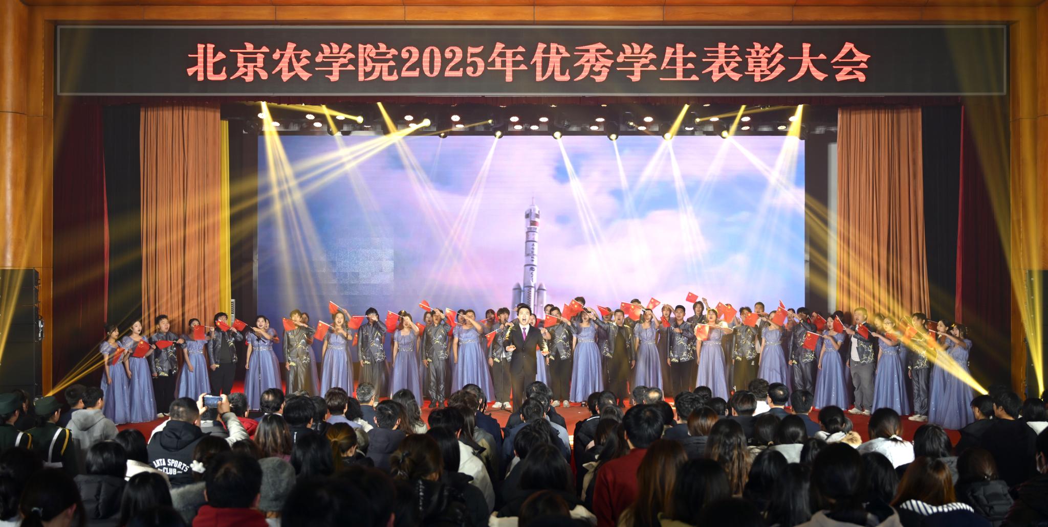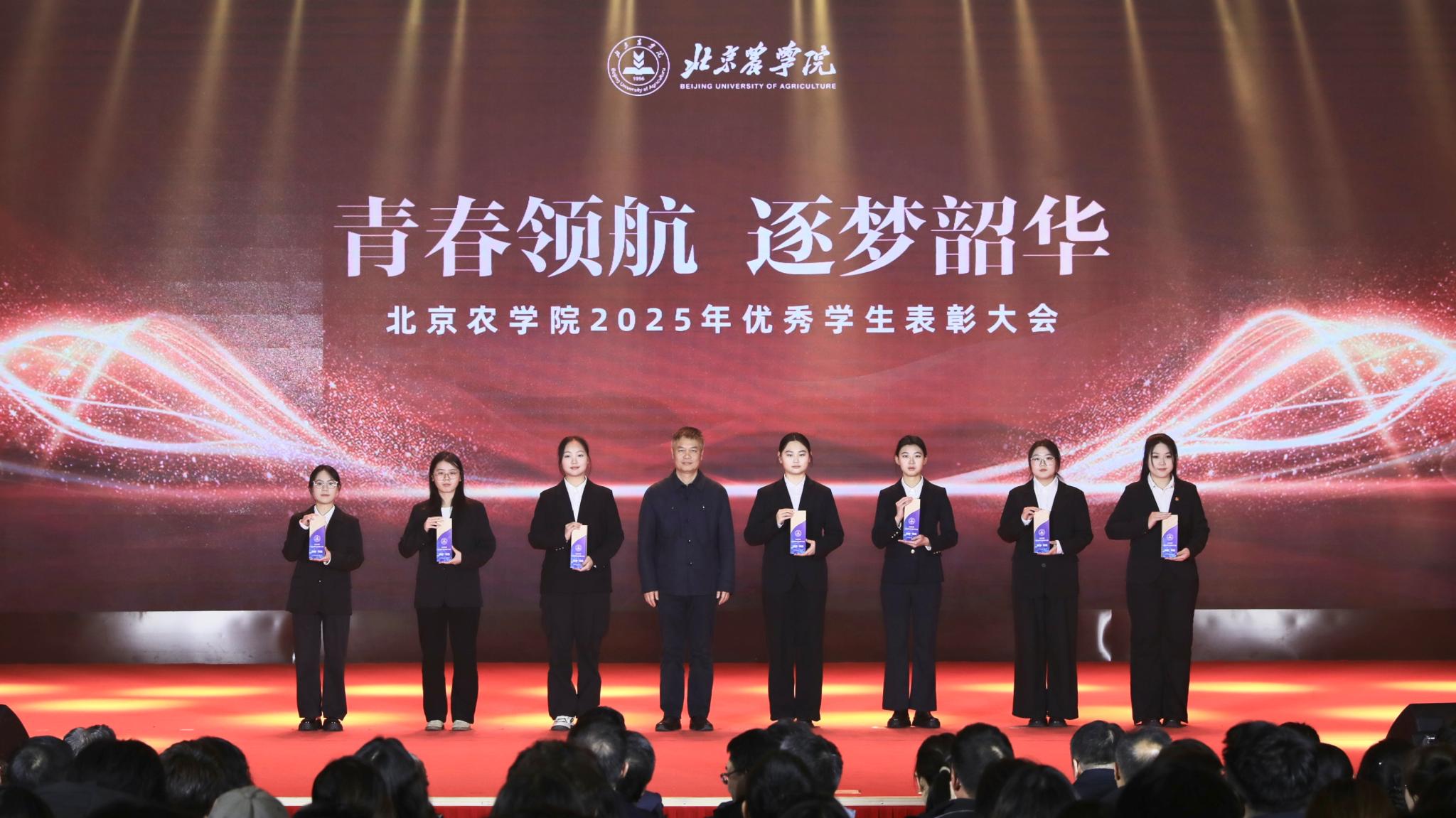 校领导分别为优秀毕业生代表、北京高校红色“1+1”示范活动获奖党支部、北京农学院国旗护卫队、“四有”优秀士兵代表、纪念中国人民抗日战争暨世界反法西斯战争胜利80周年大会广场合唱团及民兵方队代表颁奖,表彰坚守信仰、爱国奉献的青春力量;为社会实践优秀团队与先进个人、心理健康类、体育类、文艺类获奖学生代表颁奖,表彰知行合一、全面发展的奋进榜样;为市级先进班集体、市级优秀学生干部、市级三好学生、国家奖学金获得者代表、“挑战杯”及各类科创竞赛获奖团队代表颁奖,表彰勤学善思、勇于创新的先进典型。