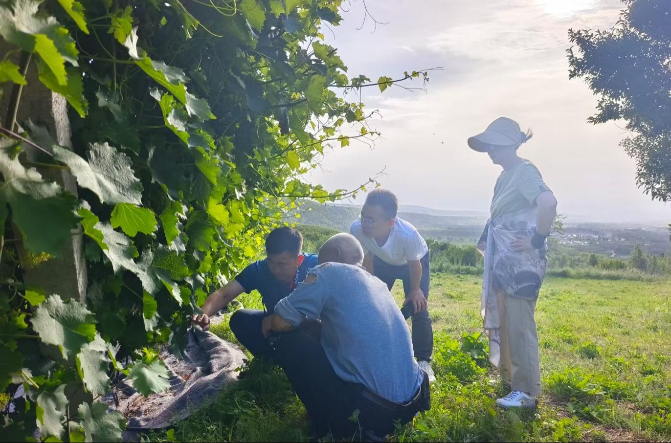 创新院为农户提供贯穿春季葡萄出墩、夏季田间管理、秋季葡萄收获、冬季埋墩入土等每个种植环节的全周期标准化技术支撑。通过推广“大小水交替”灌溉法调节根系微环境,提升水肥利用效率;依据品种抗性差异,集成生物防治与矿物源农药技术,推行病虫害有机防控;根据树势,动态调整单株负载量,确定适宜的挂果密度;通过合理株距配置,改善田间通风透光条件,降低病害风险,从源头上为葡萄酒产业的品质提升筑牢技术根基,将亩产严格控制在300公斤—600公斤,实现“减量提质”的同时,缓解了葡萄树体老化与土壤肥力退化问题,助力发展生态友好型农业。