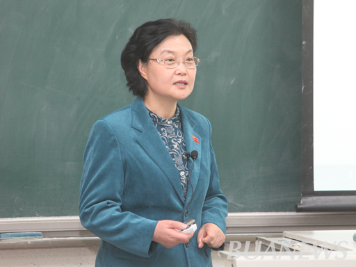 王慧敏通过幽默诙谐的语言,与同学们形成良好互动,课堂气氛十分融洽。“校长讲的这堂课是对我们专业知识的非常有益的补充,整个上课过程气氛都很活跃,我们很喜欢在这样的课堂环境上学习更多的知识。”课间休息的时候,几名同学在交流着自己的想法。