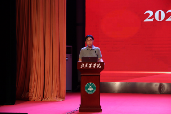 教师代表崔金腾的发言饱含对新生的期许与关怀,他结合园林学科特点,叮嘱同学们要保持好奇心与求知欲,在理论学习与实践操作中锤炼专业本领。