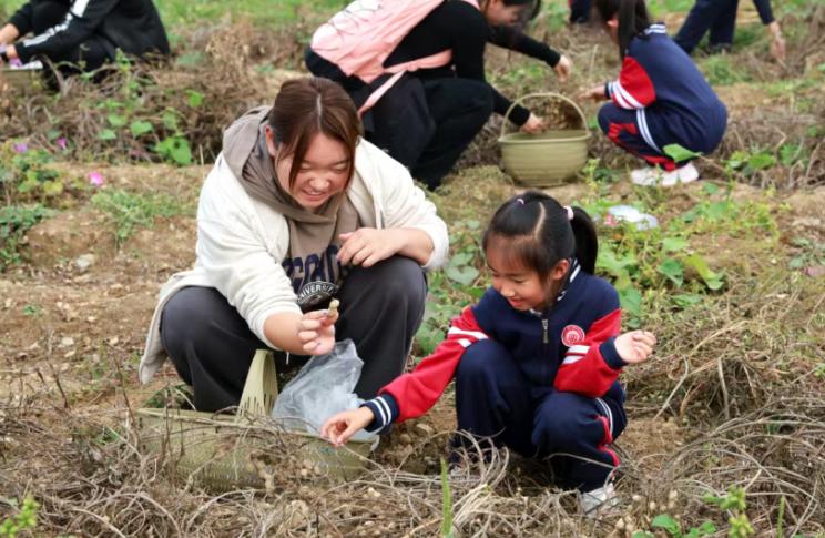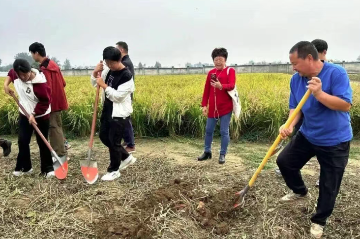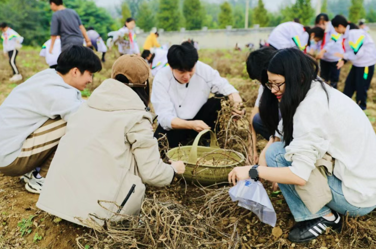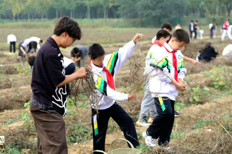 当沾满泥土的双手捧起沉甸甸的收获,洋溢在同学们脸上的是纯粹的欣喜与满足。