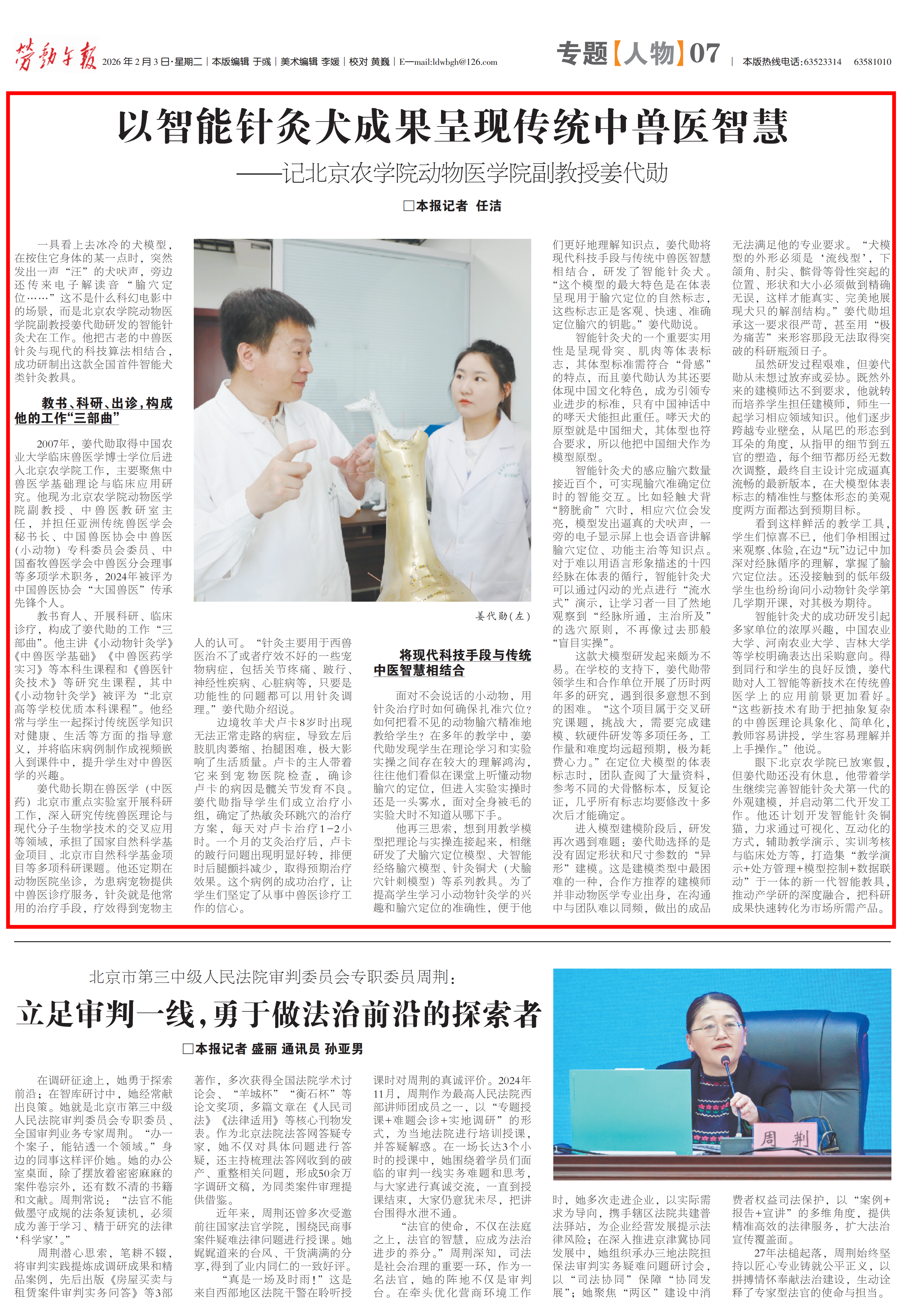 【劳动午报】以智能针灸犬成果呈现传统中兽医智慧 —记北京农学院动物医学院副教授姜代勋