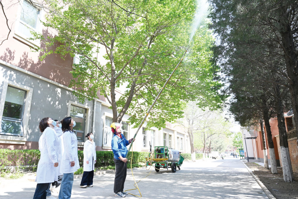 这几天恰是北京圆柏花粉的高发期。我之前几年一直没有过敏,而这两天感到眼睛不舒服,虽然每天用洗眼器冲洗,但由于天天在圆柏树下做试验,也达到了阈值,不得不去医院开了眼药水。团队师生都很心疼我,我也担心学生过敏,但是看到研究应用了并取得效果,真是由衷地感到自豪。