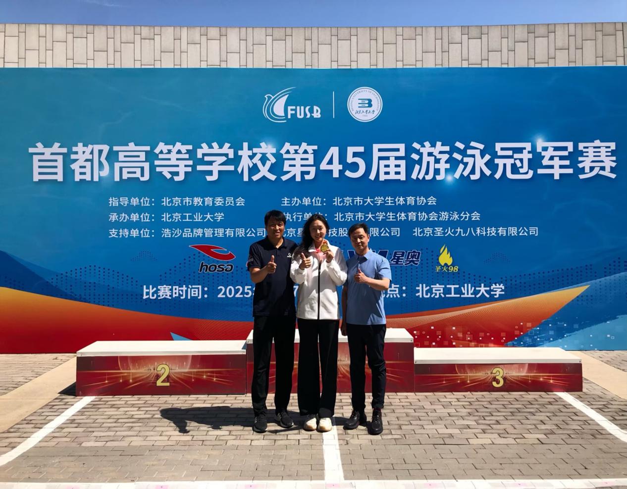 领奖台背后是常人难以想象的坚持:冬训时刺骨的池水、夏训中高强度的力量训练,让每一次划水都充满挑战,但她从未有过放弃的念头。“每一次划水、每一次转身,都是在为‘北农游泳队’这个名字攒力气。”这份执着与坚守,让她在2023年全国大学生游泳锦标赛和2025年首都高等学校游泳比赛中崭露头角,成功打破全国纪录与北京市纪录,为学校赢得了荣誉。