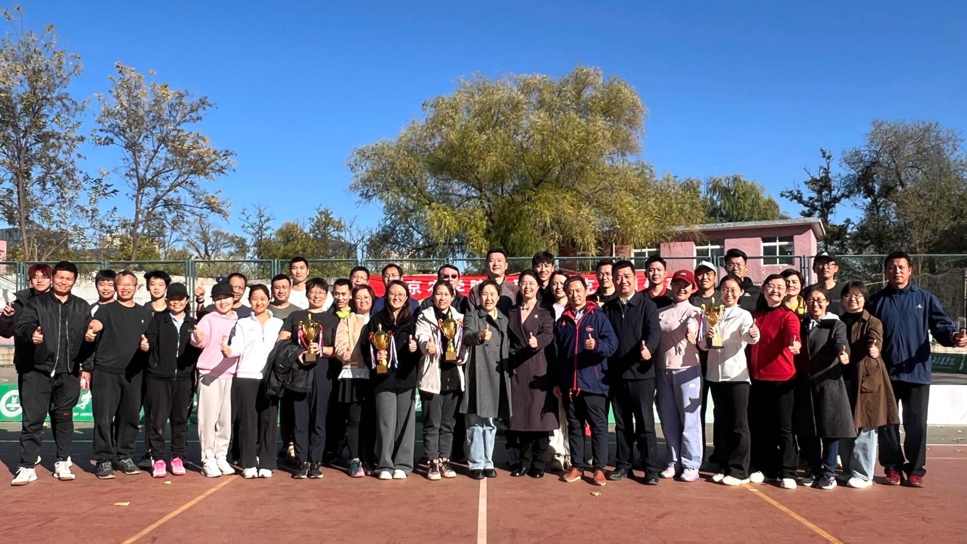 近日,我校首届教职工匹克球团体赛落下帷幕。本次比赛由校工会主办,基础教学部分工会和校教职工匹克球协会共同承办。赛事设男子双打、女子双打、混合双打三个项目,分为两个循环比赛阶段,共计进行26场角逐。各分工会积极响应,共有13个分工会组建15支代表队参赛,参与教职工达130余人。观赛的观众累计达400余人次。经过三周的激烈角逐,基础教学部球队荣获冠军、机关2队获亚军、机关1队获季军,校办产业处球队获优胜奖。