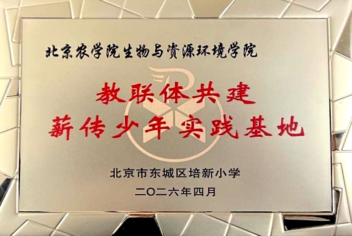活动现场,培新小学校长王建宣布教联体育人共同体正式启动。北京农学院生物与资源环境学院与北京市东城区培新小学共建的“薪传少年实践基地”正式授牌落地。基地以生态科普、劳动实践、科创启蒙为核心定位,充分发挥生资学院在绿色农业、生态化学等领域的专业与平台优势,为青少年打造实践基地。
