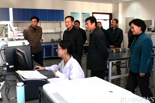 随后,林克庆一行来到食品楼,实地考察了农产品有害微生物及农残安全检测与控制北京市重点实验室,并听取了食品科学与工程学院院长张红星对实验室全面情况的介绍,了解了农产品安全检测、环境风险评估、葡萄酒加工等创新技术科研情况,听取了陈湘宁教授对鲜切菜贮藏保鲜技术的推广及应用。在实验室,林克庆书记与研究生、本科生亲切交流,询问了他们的学习、科研和生活情况。