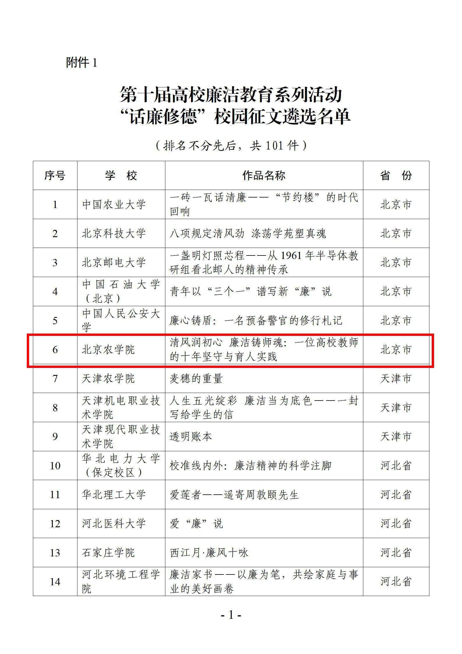 第十届高校廉洁教育系列活动以“清风育德守初心廉洁笃行担使命”为主题,面向全国高校征集廉洁文化作品、廉洁文化地图素材、廉洁文化课程等多类成果。经过专家评审,我校生物与资源环境学院赵文婷副教授撰写的《清风润初心廉洁铸师魂——一位高校教师的十年坚守与育人实践》入选“话廉修德”校园征文成果;我校徐践教授领衔的黄山店教授工作站入选“传廉促担当”廉洁文化地图素材,生动呈现了我校将廉洁文化建设深度融入师德师风建设、人才培养与社会服务过程的探索与实践。