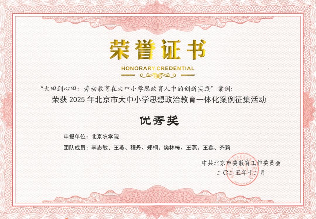 学校案例荣获北京市大中小学思政教育一体化案例优秀奖
