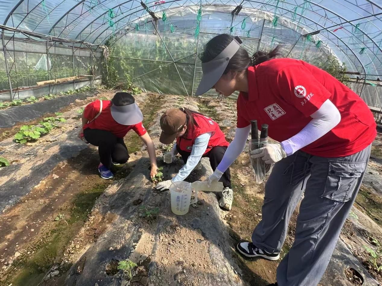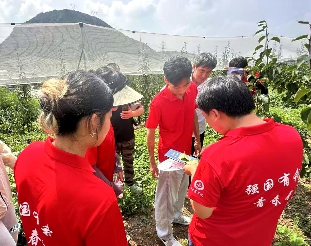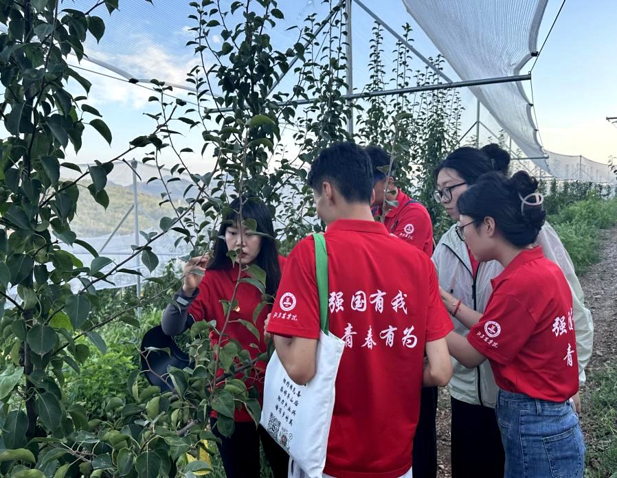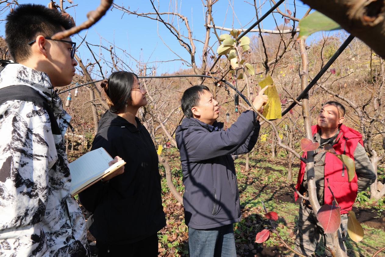 生物与资源环境学院师生党员以党建引领绿色发展,把实验室搬到田间地头,把科技小院作为服务阵地,推动课堂学习与乡村实践紧密结合,以专业优势服务特色产业发展。团队长期致力于“佛见喜梨”绿色栽培、病虫害及黑化病绿色防控、产业化推广等工作,2023—2024年带动茅山后村种植户年均增收2.5万余元。依托科技小院平台,“梨好,茅山后-助力乡村振兴”实践团队荣获2024年全国研究生乡村振兴案例银奖。