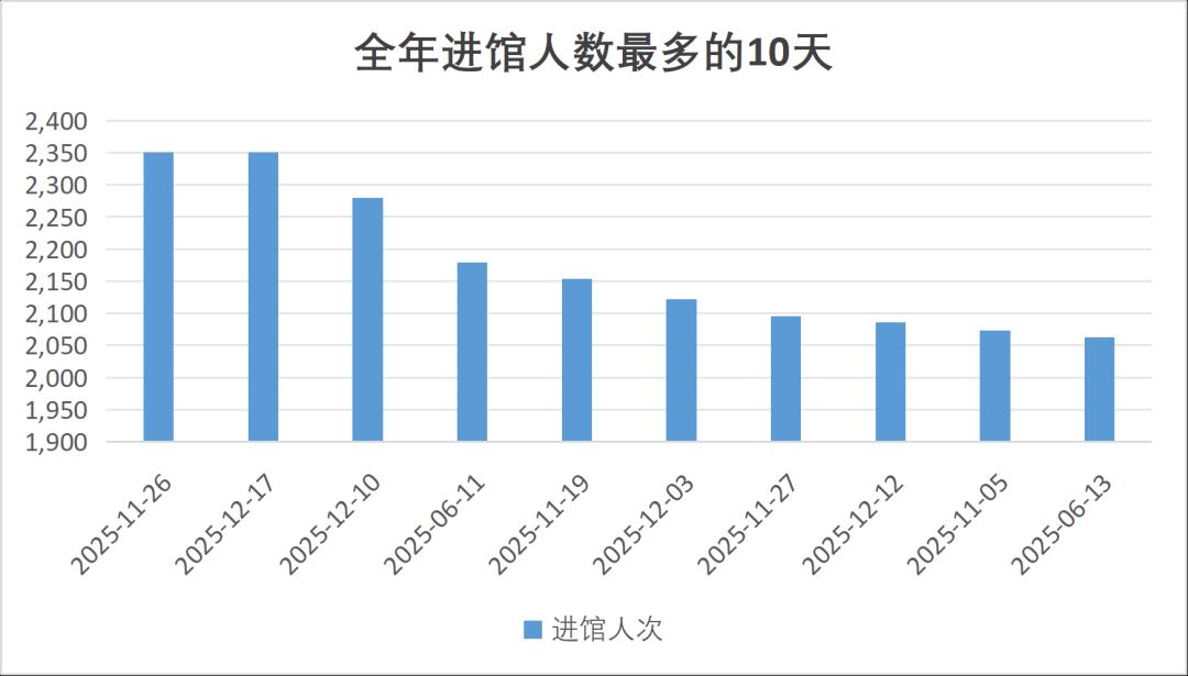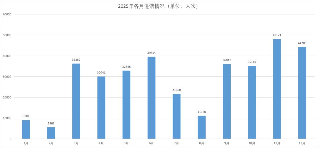 过去一年,图书馆共接待读者349631人次;2025年11月26日、12月17日是入馆人数最多的两天。这些日子,你是不是也在图书馆潜心阅读呢?每天的进馆高峰时段为17-18点、12-13点、11-12点,那些专心致志的阅读者中是否也有你的身影?